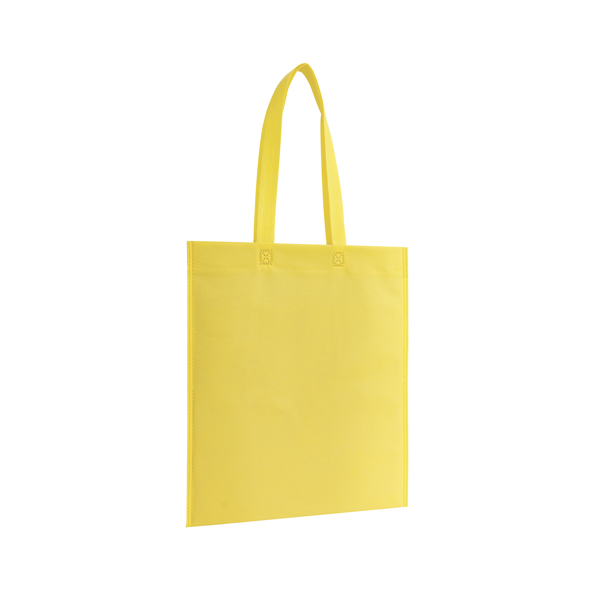 Sacoșă termolipită fără burduf, fabricată din material non woven (nețesut), cu mâner lung din bandă de aceeași culoare.